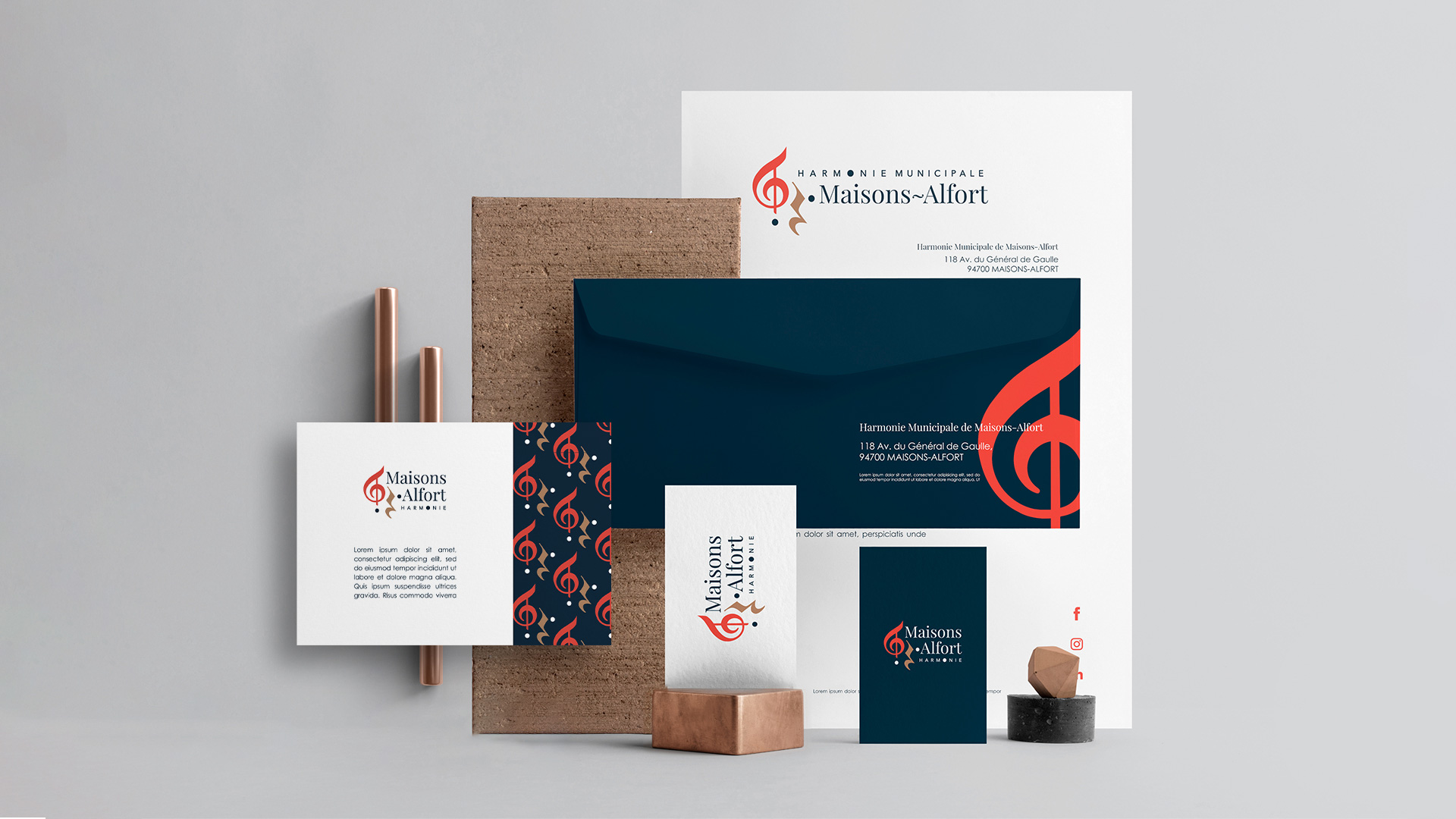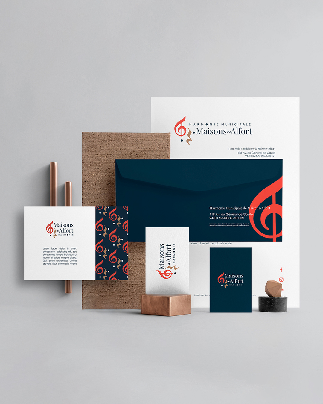 L’identité a été déclinée sur différents supports de communication ainsi que sur la tenue des musiciennes et musiciens, renforçant la présence visuelle de l’harmonie lors de ses représentations.