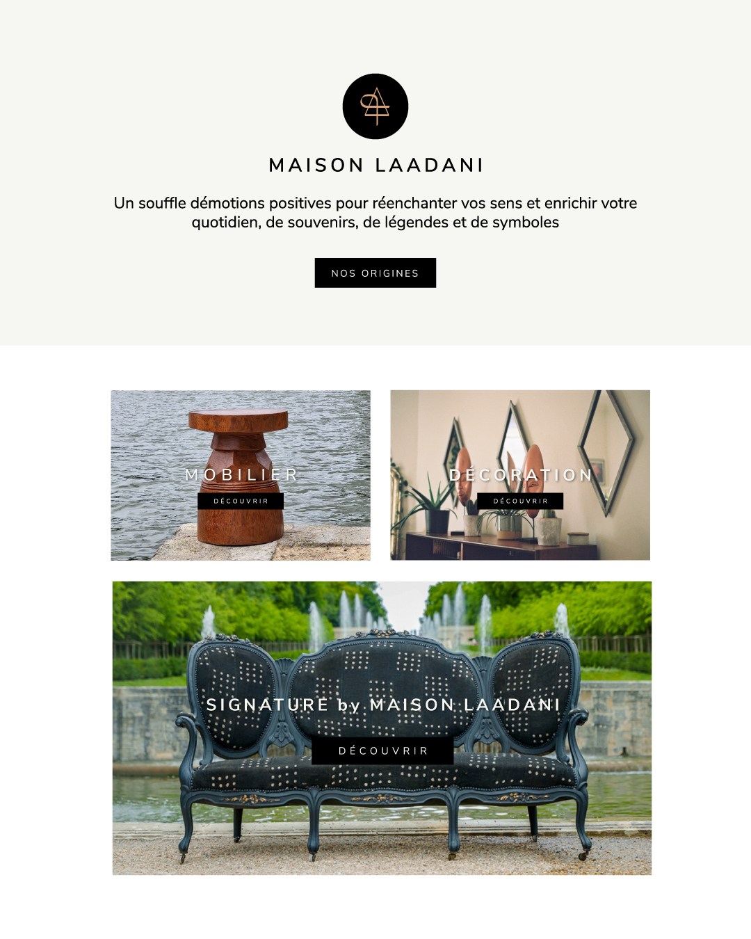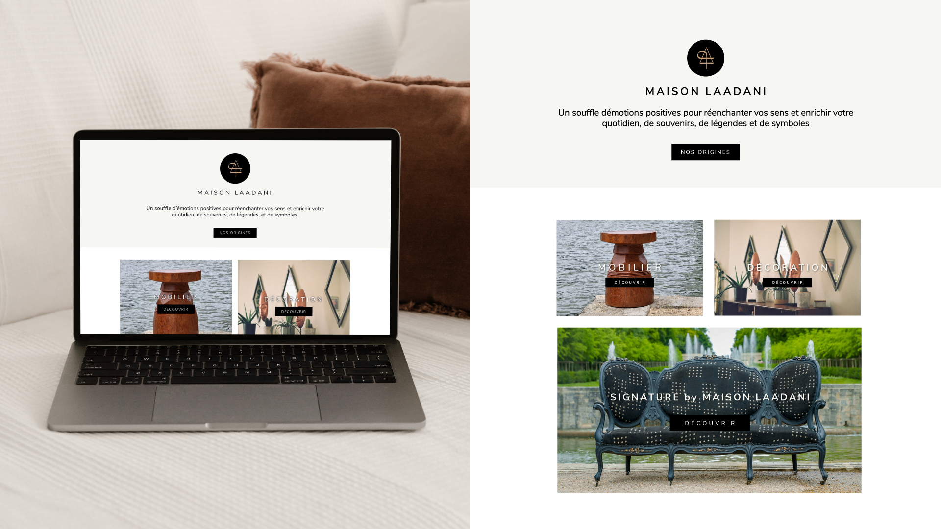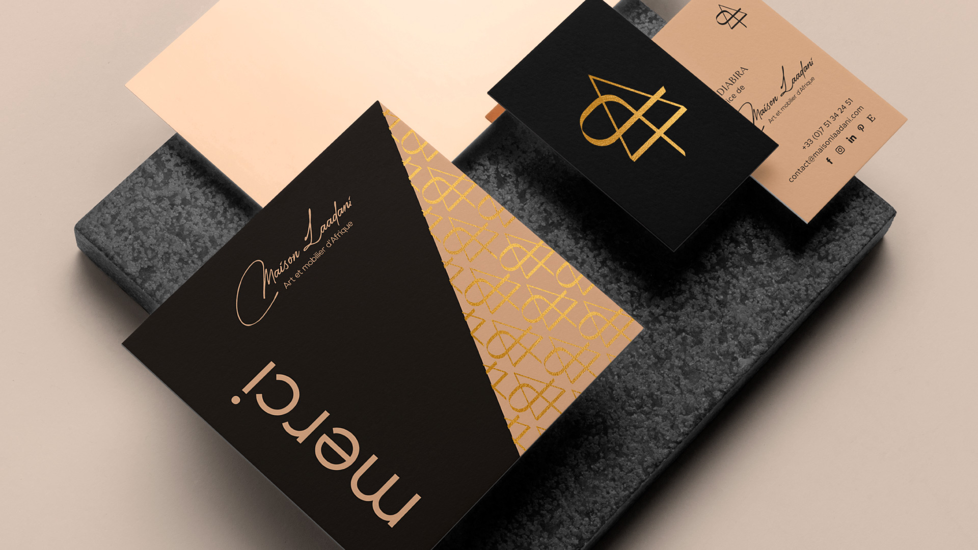 Déployé sur les supports éditoriaux et digitaux de la marque, ce langage graphique accompagne Maison Laadani dans la valorisation de ses collections.