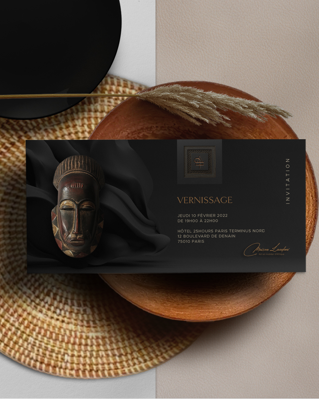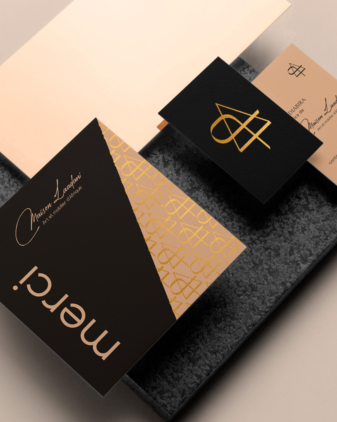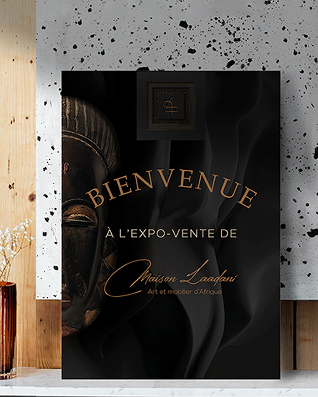 Utilisé sur les supports de communication et les objets éditoriaux, il renforce la dimension culturelle et patrimoniale de l’univers Maison Laadani.