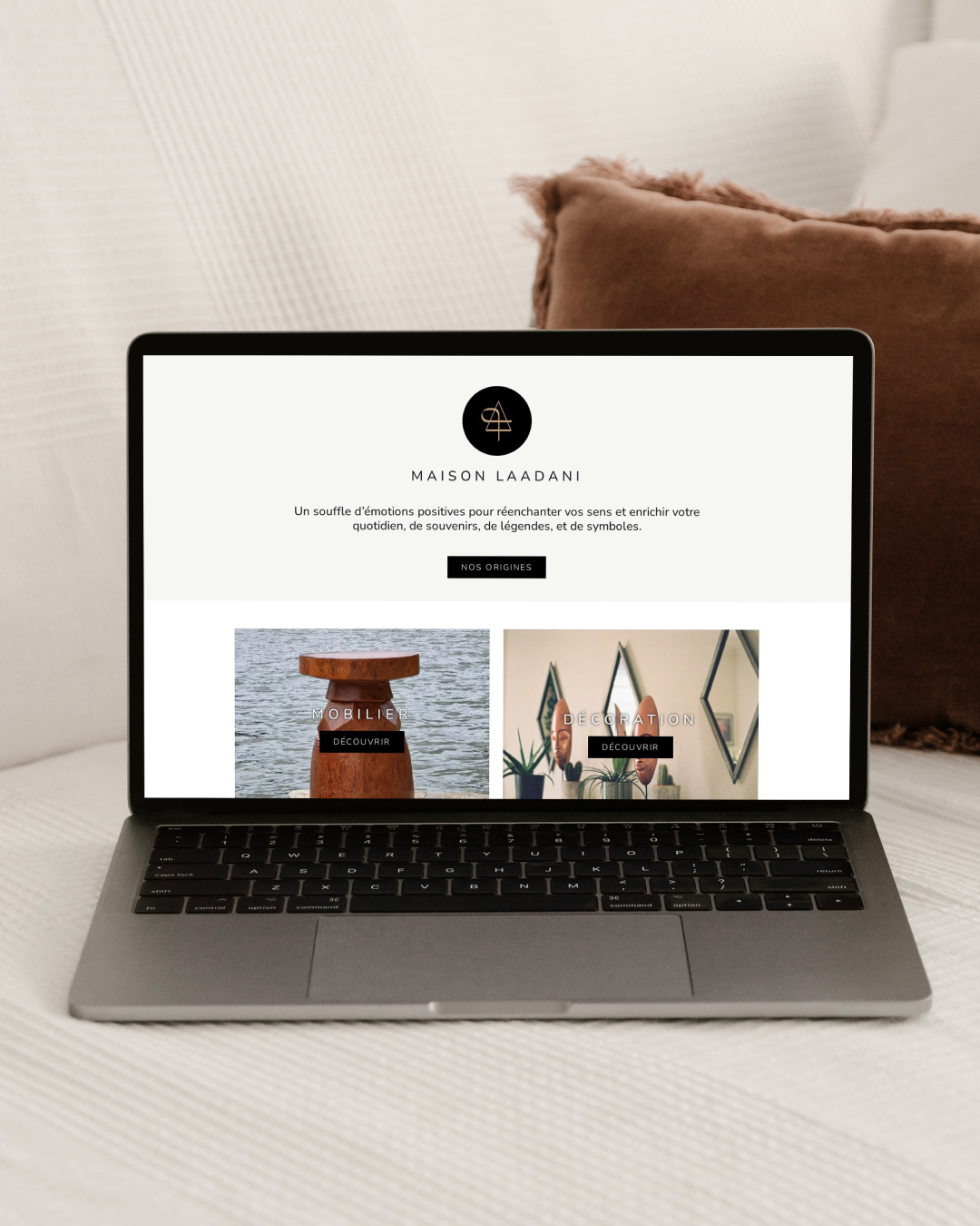 Déjà dotée d’un logotype typographique, conçu comme une signature, Maison Laadani souhaitait enrichir son identité par la création d’un symbole secondaire capable d’incarner son ancrage culturel.