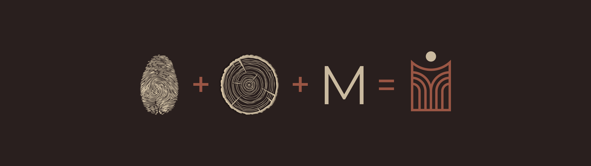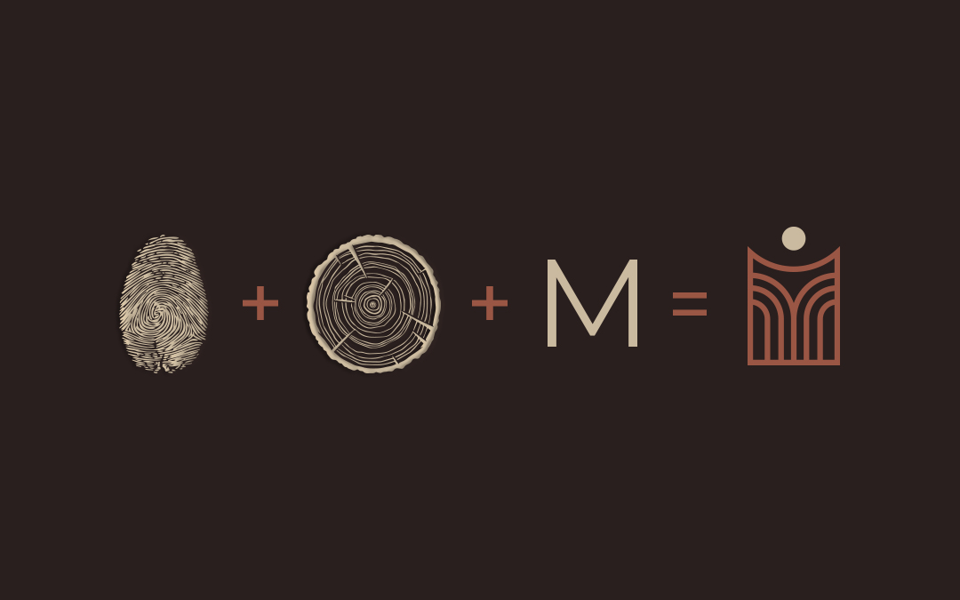Le logotype prend forme à partir de la lettre M, dont la structure s’inspire à la fois des empreintes digitales et du cœur des arbres — deux symboles universels de l’origine et de la mémoire.