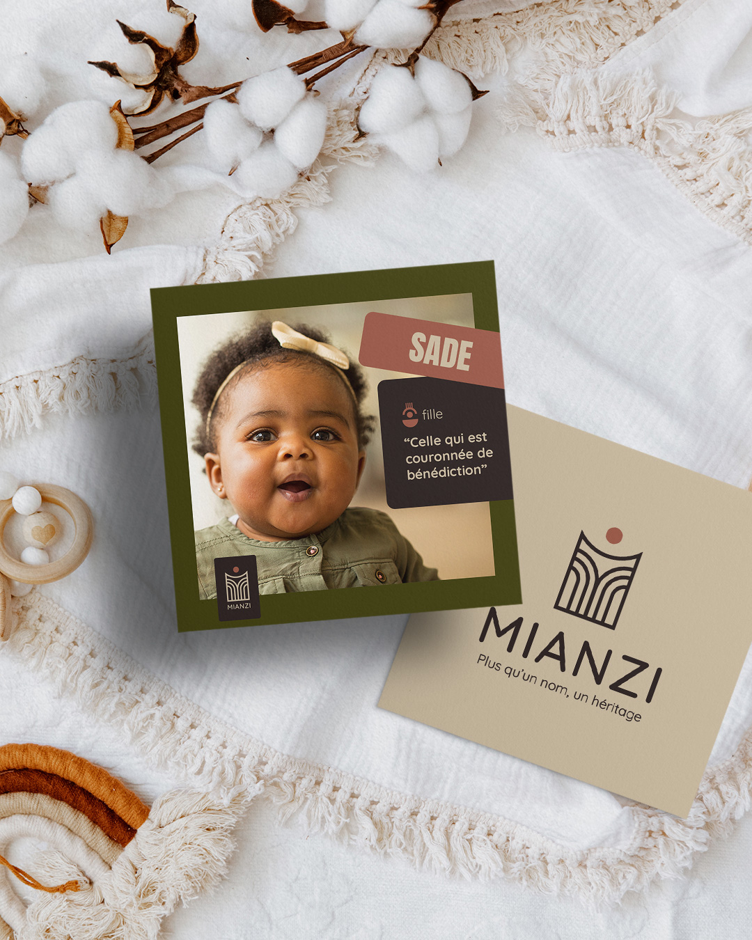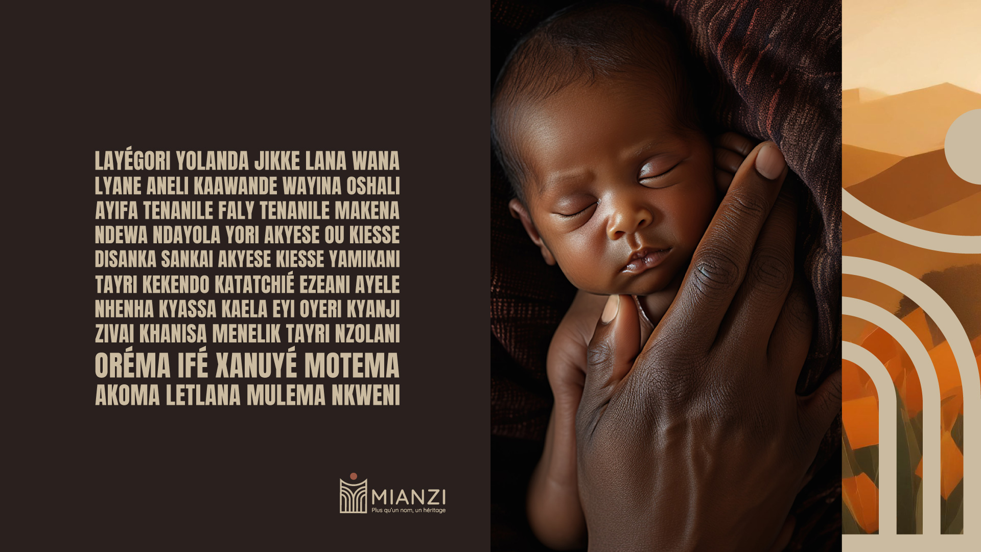 Cette composition graphique fait écho à l’essence du projet : transmettre un héritage culturel à travers un geste intime et fondateur — le choix d’un prénom.