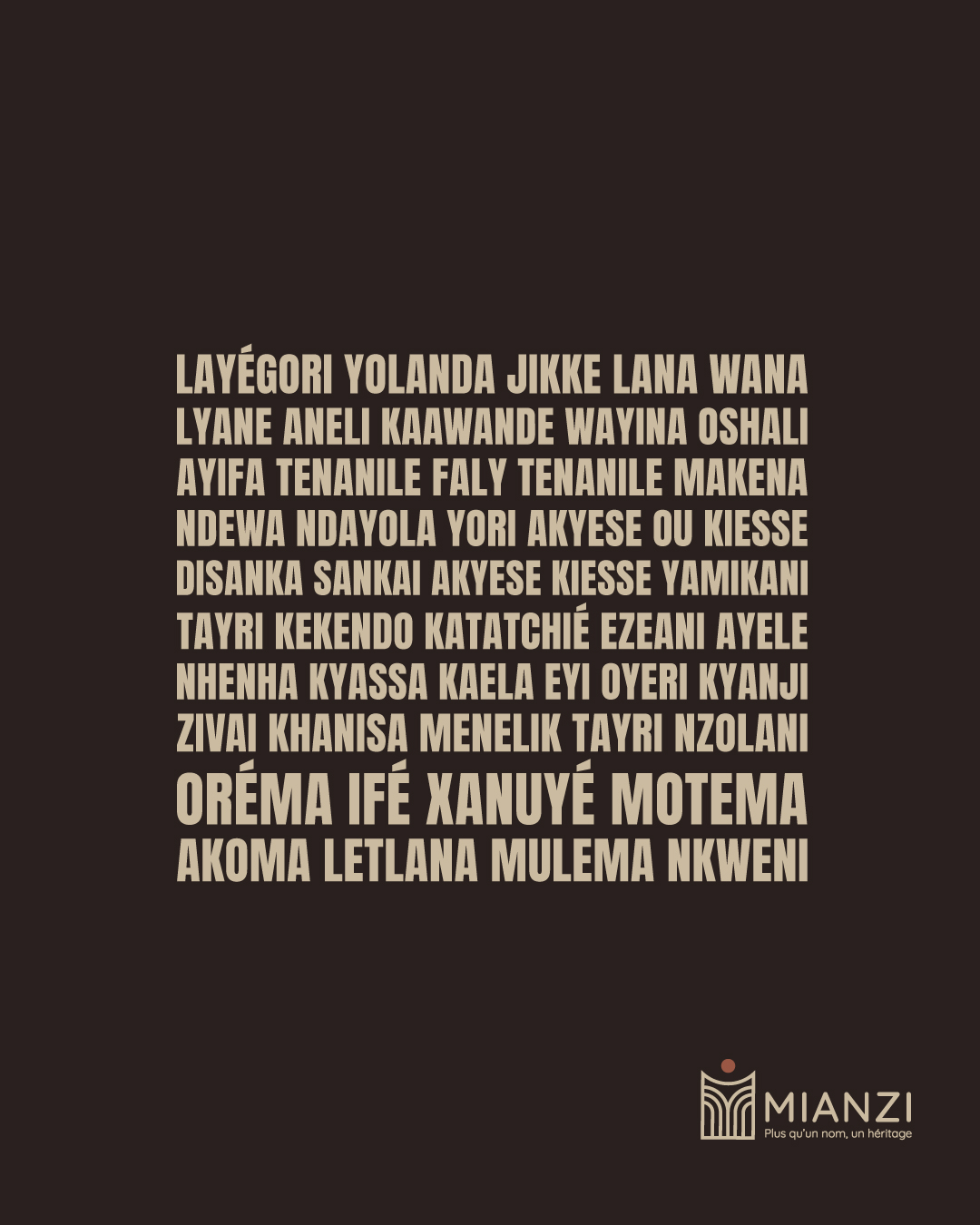 Mianzi, qui signifie « racines » en Lari, une langue du Congo, est une initiative dédiée à la transmission culturelle à travers le prénom.